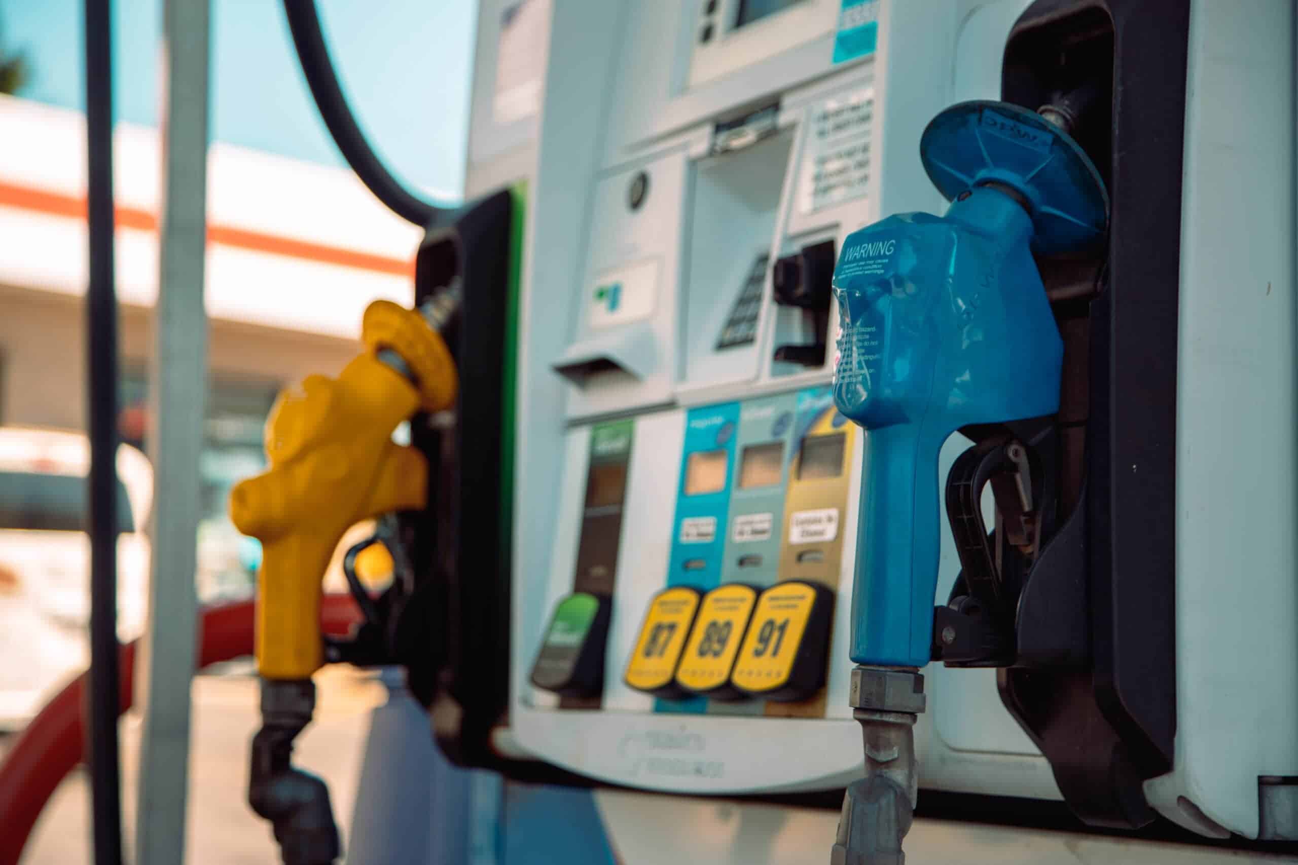 Fueling a vehicle at a gas station with U.S. energy and fuel efficiency focus.