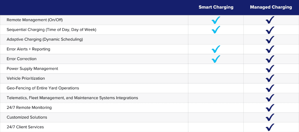 Demand charging. Automated load management. Systems integration. Adaptive charging. Remote management. With the electrification movement well underway, fleets are being introduced to a whole new glossary of terms and an ever-evolving list of key considerations for selecting vehicle technology, charging infrastructure, and route optimization tools. Relative to charging their fleets, organizations are tasked with optimizing fleet charging costs—designed as a choice between smart or managed charging technology. What’s the difference you ask? Keep reading below to find out.